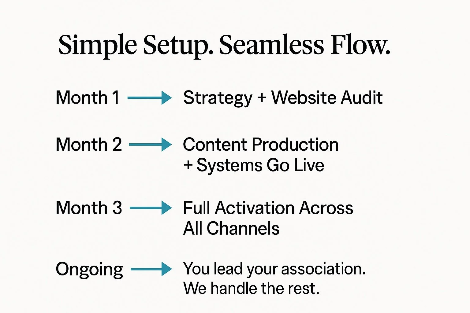 Then we build systems that work—so your story doesn’t just sit on a hard drive. It shows up in inboxes, feeds, meetings, and member hearts.
